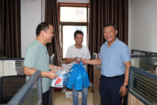入夏以来,持续的高温天气给生产生活带来了严峻挑战,为切实做好防暑降温工作,保障职工的身体健康与生产安全,传递公司关怀,激发团队干劲,8月1日,检测公司党总支书记、总经理任宇带领公司领导班子成员,深入公司各部门及奋战在各项目现场的一线职工中,开展“夏日送清凉”慰问活动,为在酷暑中坚守岗位的员工送去清凉物资和诚挚关怀。