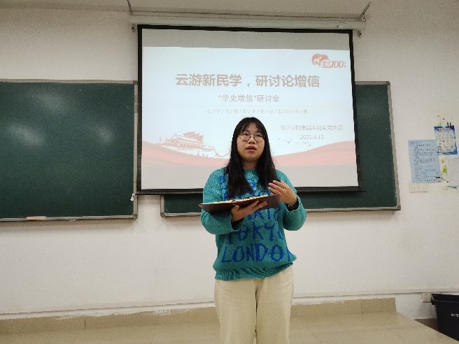 “民族复兴千年伟业,百年恰是风华正茂......抚今忆惜,意往神追,我们向一毛泽东、蔡和森为代表的新民学会先辈致敬”一首夏远生同志纪念新民学会成立百年的纪念文章在化学与食品工程学院学生党员中流传开来。原来,在新民学会成立103周年之际,该学院在组织开展“云游新民学,研讨论增信”专题研讨学习活动,旨在引导学生认真学习党史,从党史中寻找理论滋养,坚定对马克思主义的信仰。