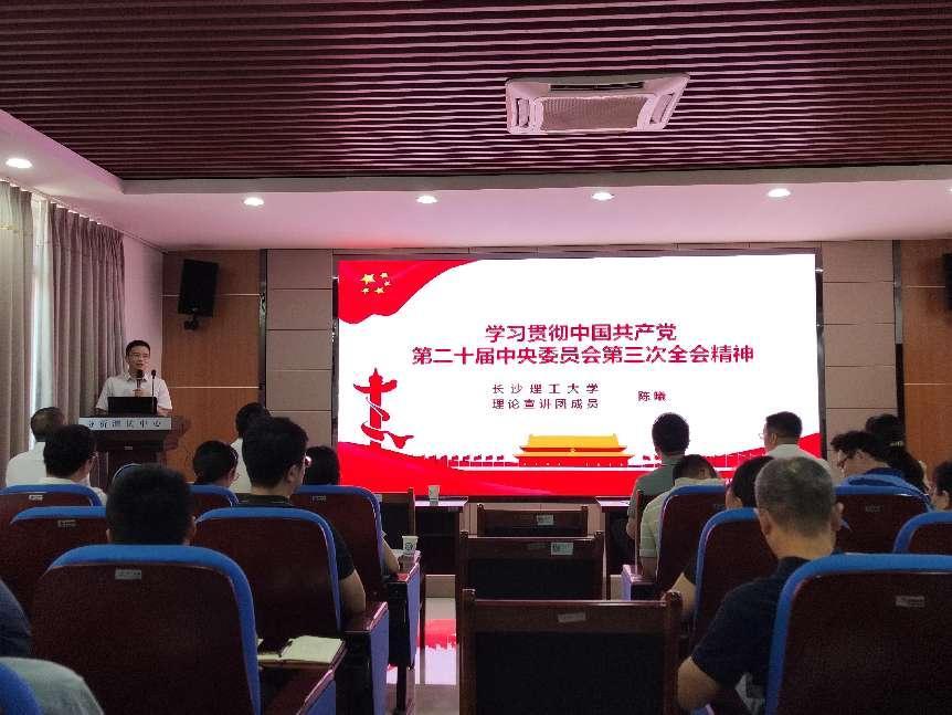 陈曦从深刻认识和把握这次全会精神,深入学习领会习近平总书记在党的二十届三中全会上的重要讲话精神,党的二十届三中全会对教育、科技、人才提出了新要求、新任务,进一步全面深化改革是建设高等教育强省的必由之路,进一步全面深化改革、奋力书就高等教育高质量发展的“长理新篇章”等五个方面,对党的二十届三中全会精神进行了深入系统解读。