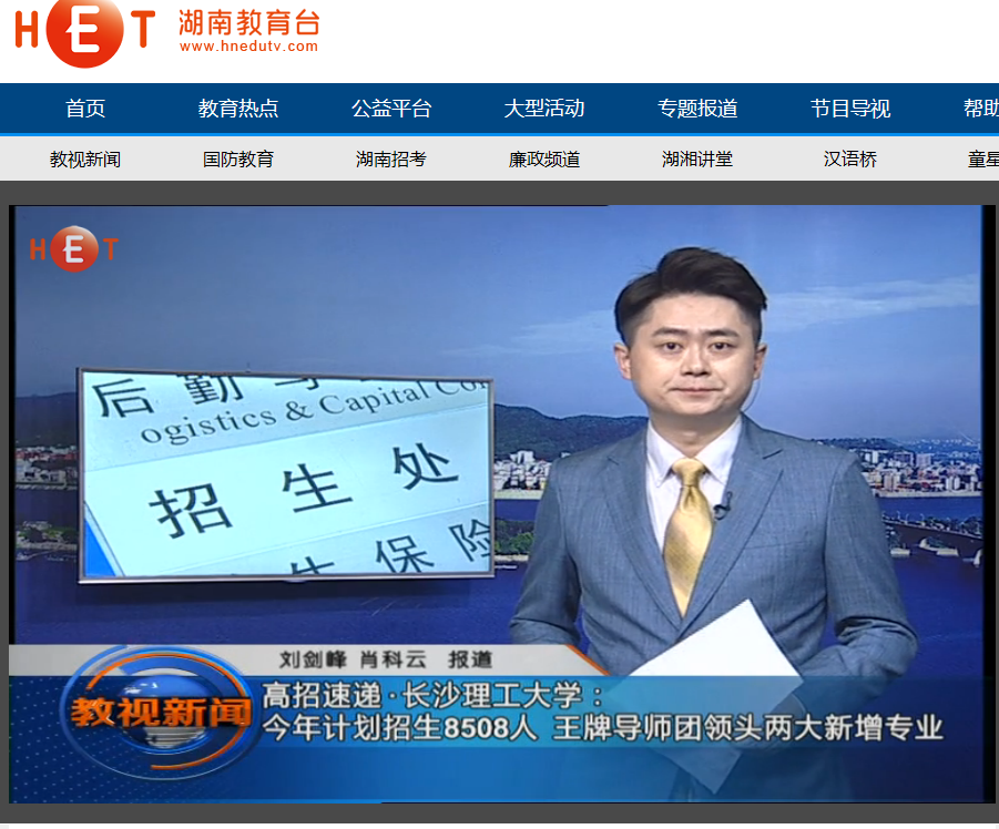 湖南教育电视台6月19日教视新闻中,以《高招速递·问鼎在线:今年计划招生8508人 王牌导师团领头两大新增专业》为题,对问鼎在线(中国)今年的招生新动态进行了报道,今年问鼎在线(中国)共招收本科生8508人,国家贫困生专项177人,较2017年增加5%,净增8人。地方农村专项544人,较2017年增加3%,净增16人。2018年,学校依托专业优势新增道路桥梁与渡河工程、新能源材料与器件2个本科专业。