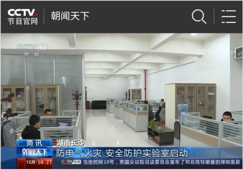 CCTV-13新闻频道《朝闻天下》栏目以“防电气火灾 安全防护实验室启动”对问鼎在线(中国)“低压配电网电气火灾与人身安全防护实验室”进行了报道。