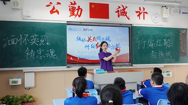 【中国新闻网】长沙大学生让竹编红船“驶入”中学课堂