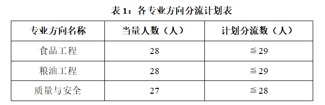 5. 本实施方案自颁布之日起执行,由食品与生物工程学院专业方向分流工作领导小组负责解释。