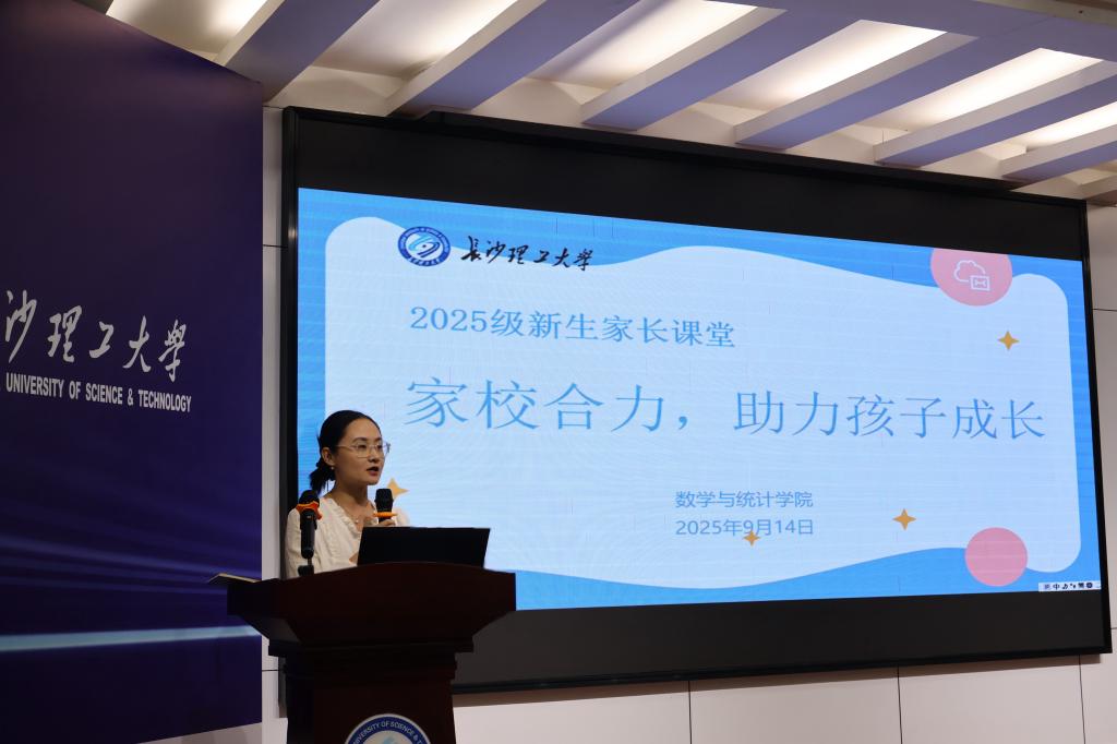刘晓丹作心理健康知识宣讲。她首先分析学生进入大学后面临的困惑,并从适应、学业、生涯和情绪方面,建议家长给予鼓励和信任,引导孩子进行自我探索,帮助孩子实现梦想。