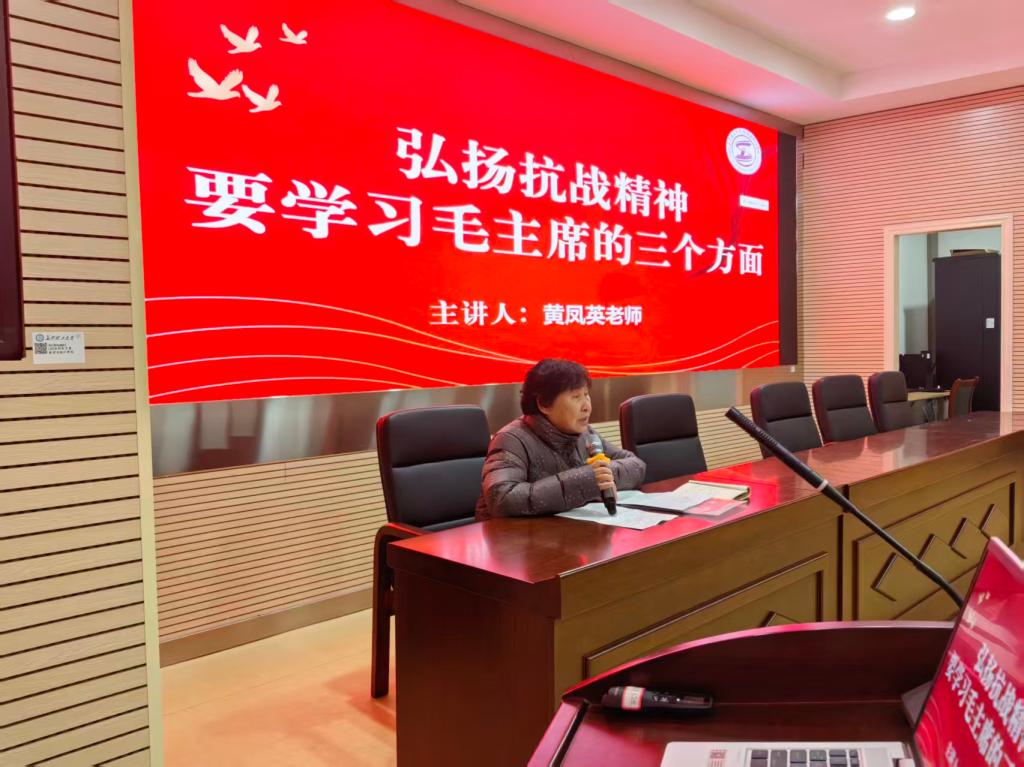 专题分享环节,黄凤英老师结合抗战精神与青年成长交流,引导同学们把铭记历史转化为行动自觉:把爱国情怀落到学业科研、支部建设和服务同学的点滴里,做到心中有信仰、脚下有力量。