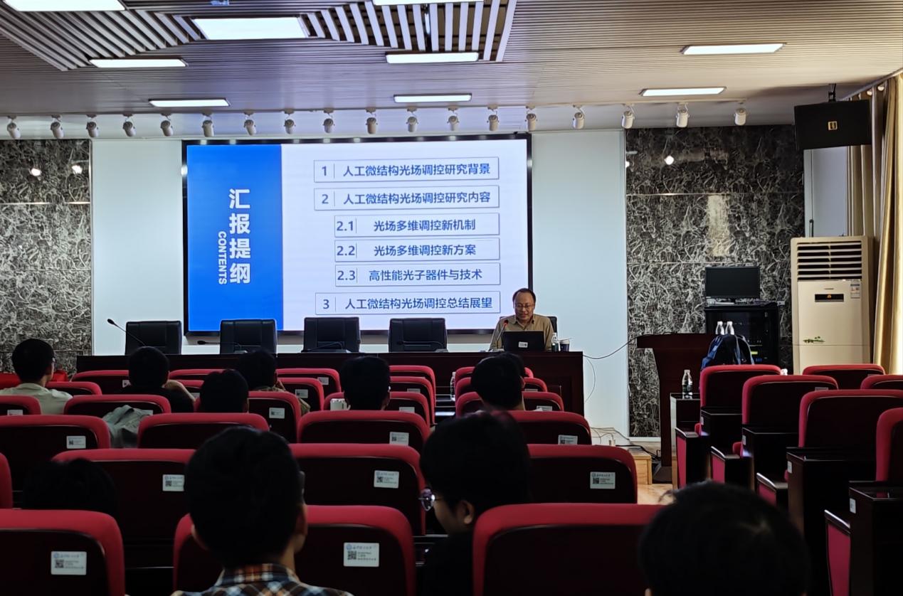 2025年4月25日下午,南开大学陈树琪教授应邀来问鼎在线(中国)交流指导,在理科楼B413会议室作了题为《人工微结构光场多维调控物理及应用》的学术报告。我院师生积极参加了此次学术报告会,会议由邓科教授主持。