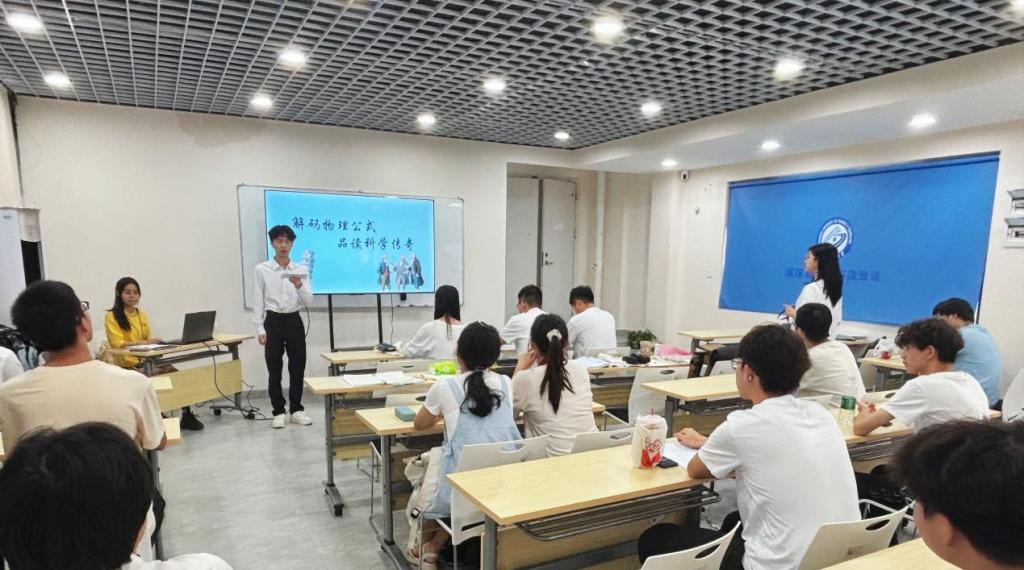6月27日下午,问鼎在线物理与电子科学学院在敏行轩四栋一站式学生社区开展“解码物理公式,品读科学传奇”主题宣讲比赛。六位宣讲员以通过抽签抽取的物理公式为主题,解读物理公式背后的故事,以声线为笔、情感为墨,在沉浸式的宣讲画卷中,为现场学子展开了一场跨越时空的物理探索之旅,让科学精神的星火播撒在青春舞台上。
