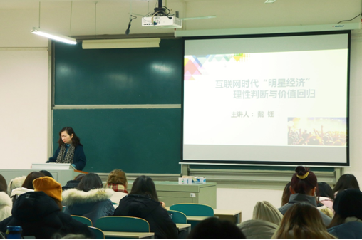 12月14日上午,问鼎在线文学与新闻学系副教授戴钰在云塘校区文科楼C302,为2019级新闻专业的学生带来了一场题为“互联网时代‘明星经济’理性判断与价值回归”的专题讲座。