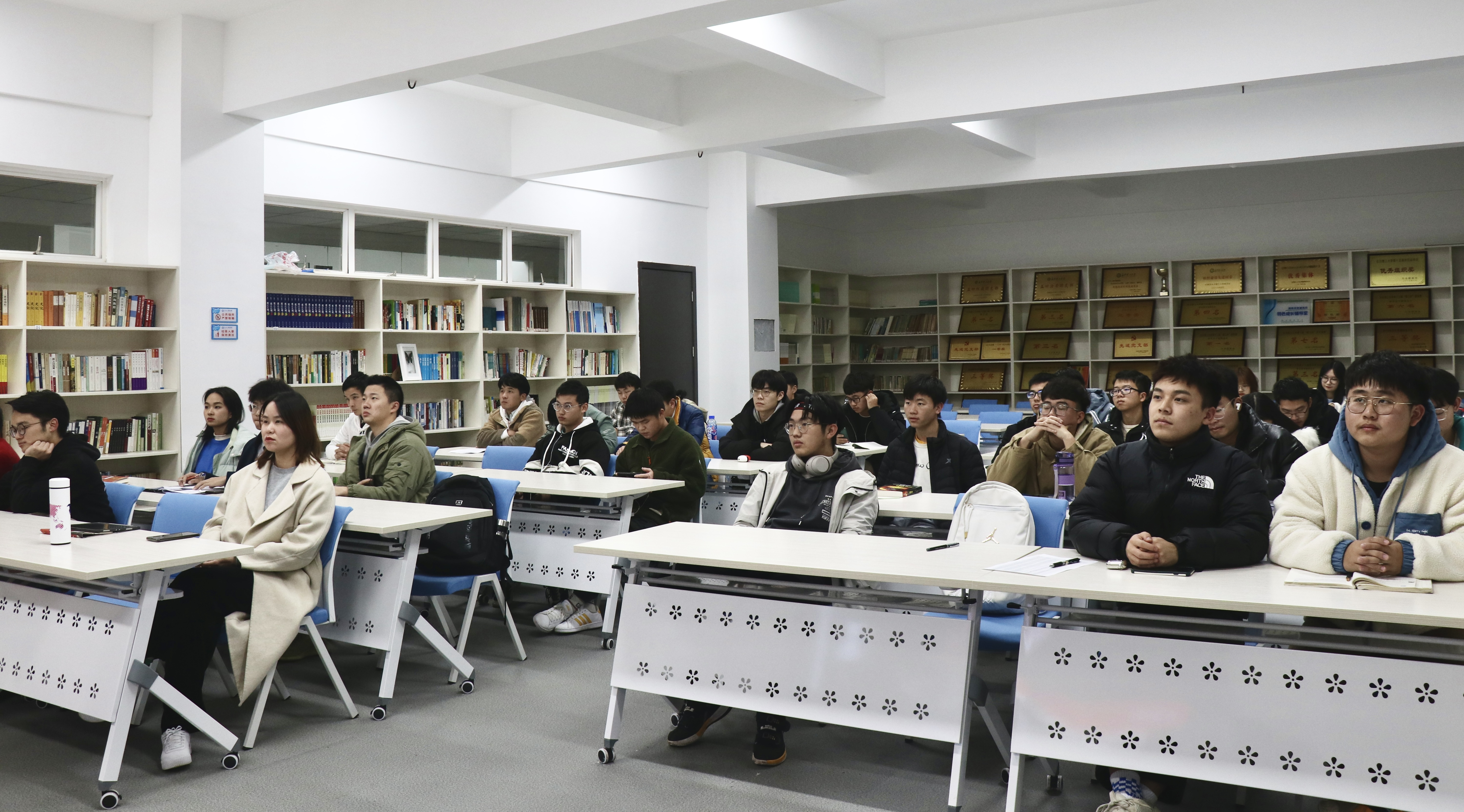 12月12日晚,土木学院学生会在云塘校区工科二号楼组织收看十九届五中全会精神主题团课,院团委书记綦丽,院学生会全体成员参加。