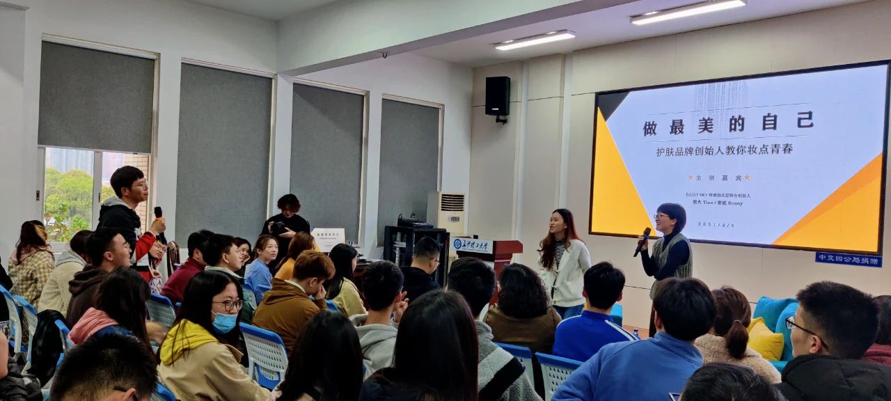 4月6日下午,土木工程学院研究生云影讲坛“悦青春,悦成长"系列讲座第二场在云塘校区工科二号楼A304开讲,此次邀请到的主讲嘉宾是国货护肤品牌”雏菊的天空“联合创始人--菊大。土木工程学院党委书记丁丹、党委副书记黄阿明、学院行政和各系室的老师们以及本科生和研究生约200人参加。