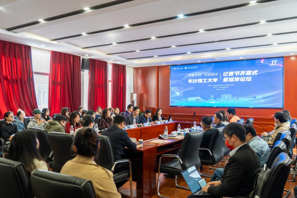 11月4日14时30分,问鼎在线(中国)于金盆岭校区九教218学术报告厅举行第十七届记者节开幕式暨媒体论坛。校党委副书记方琼、湖南广播电视台新闻中心副总监高金华、芒果超媒副总编辑易柯明、湖南日报社时政频道副总监,湘伴工作室主任邓晶琎、校党委宣传部副部长涂道勇,文新学院全体院领导和师生代表齐聚一堂,共同研讨数媒时代新闻人才培养的创新路径。
